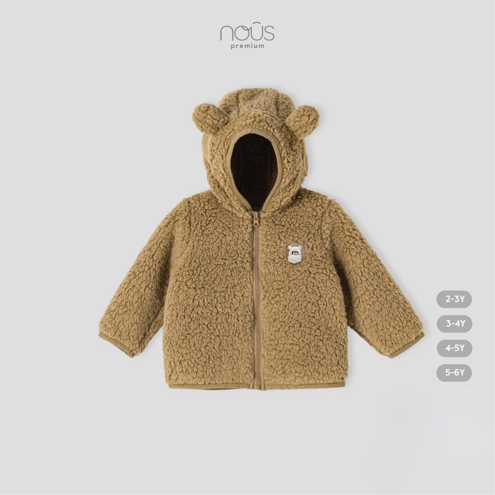 やさしいブラウンカラーとフード付きデザインで、秋冬のおでかけコーデにぴったりです。